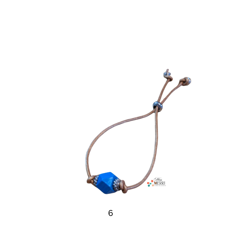 Our Minimalist Geo Leather Bracelet series celebrates clean lines, bold colours, and modern simplicity. Each bracelet features a hand-painted geometric bead, crafted with non-toxic acrylic paint and strung on a genuine leather cord. Finished with stainless steel details and an adjustable clasp, these bracelets are designed for adults and younger people who love minimalist style with a unique, colourful twist.